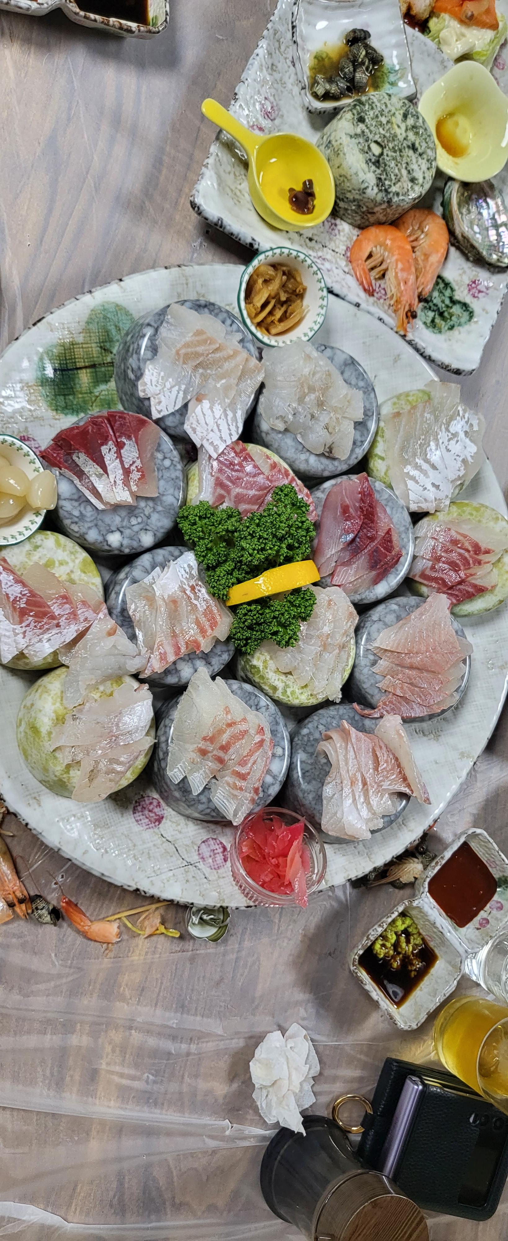 생선회는 시간이 지나면 신선도가 떨어지므로, 회를 주문한 후에는 바로 먹는 것이 좋습니다.